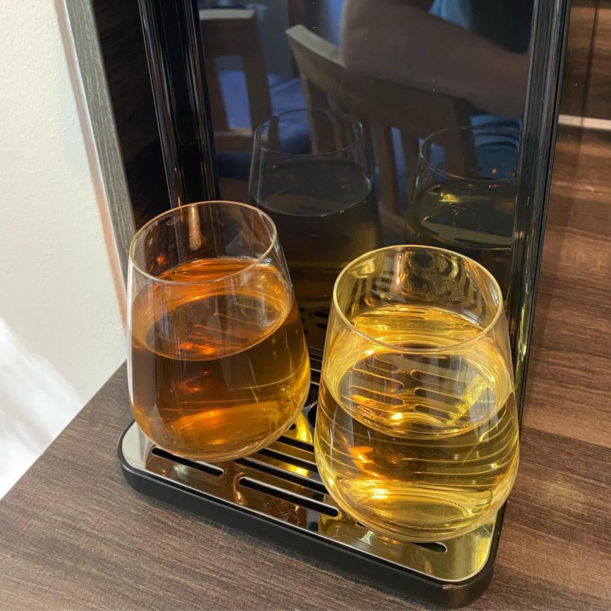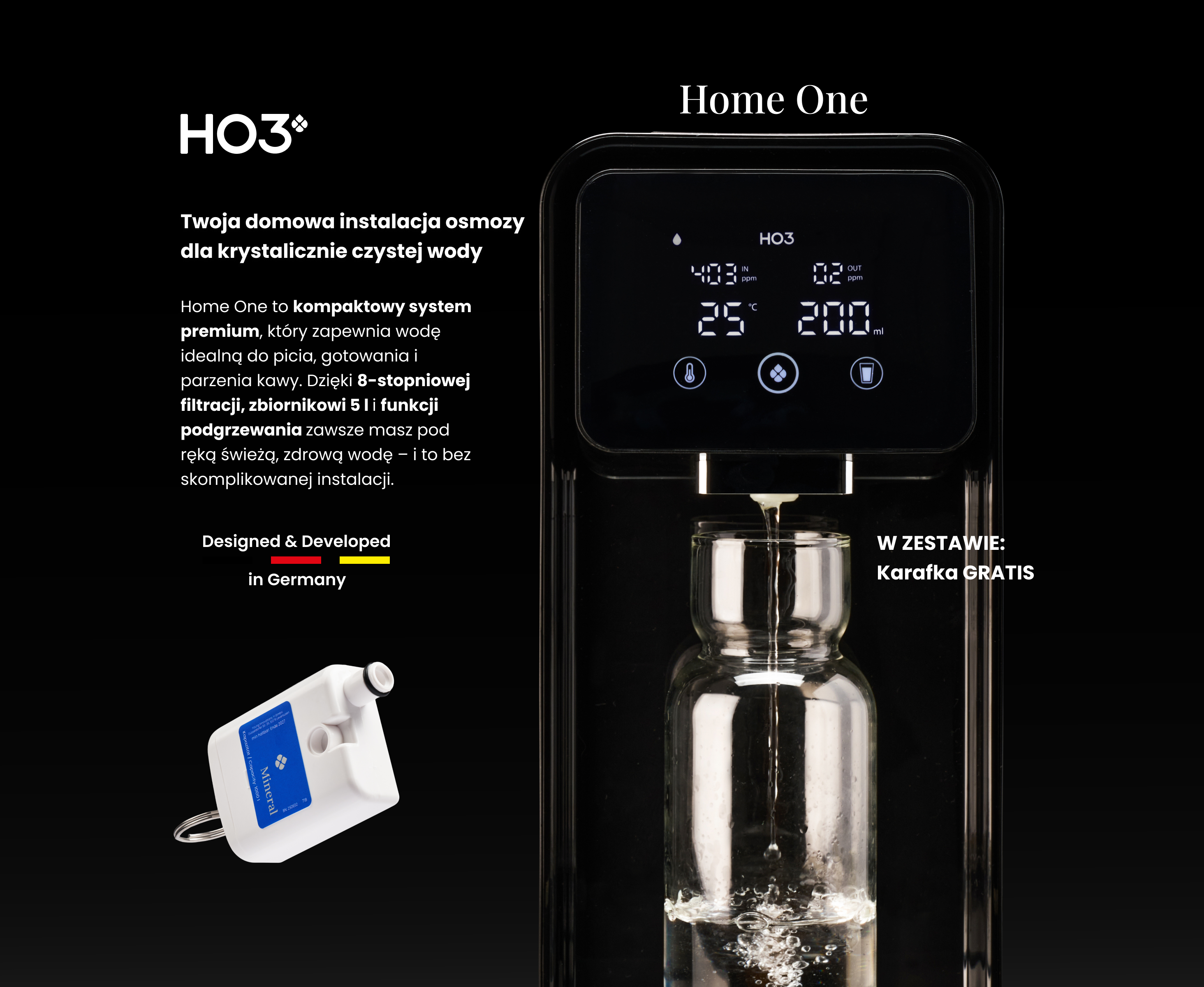 Ta ręcznie wykonana karafka ze szkła borokrzemowego jest nie tylko praktyczna, ale także stanowi prawdziwą ozdobę! Dzięki pojemności 650 ml idealnie mieści się pod wylewką Home One – nawet wtedy, gdy tacka ociekowa jest zamontowana. Po wypiciu wody wystarczy włożyć ją do zmywarki. A jako mały dodatek, dno karafki zdobi laserowo grawerowane logo – stylowe i pełne uroku.