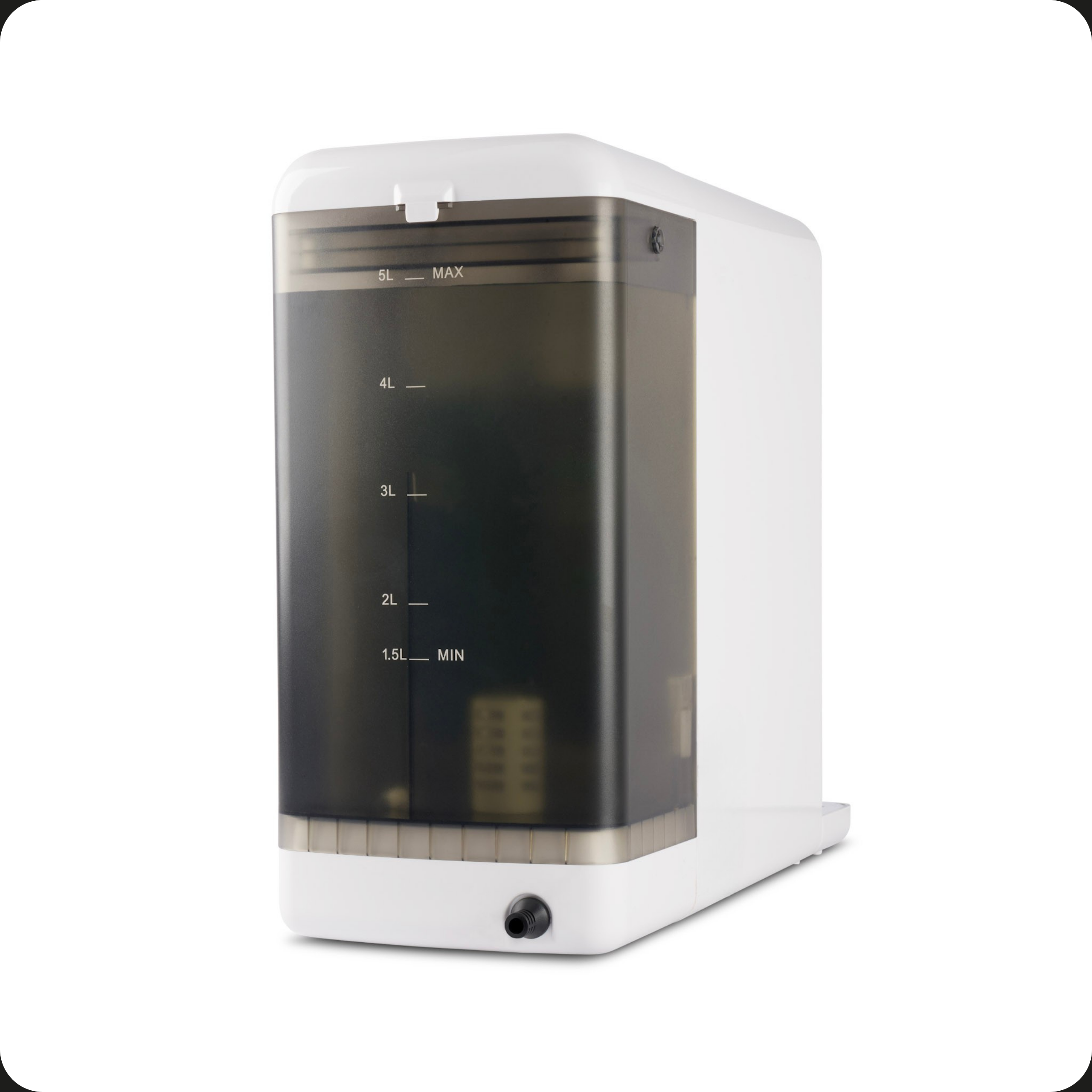Pojemny, przezroczysty zbiornik 5 l – bez podłączenia do instalacji. Dzięki separacji woda czysta i odpadowa są rozdzielane 3,5 l : 1,5 l, więc pijesz tylko to, co naprawdę czyste.